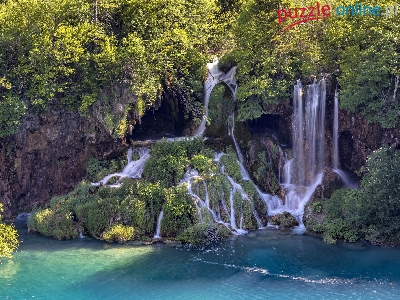 Drzewa, Park Narodowy Jezior Plitwickich, Chorwacja, Wodospad, Roślinność