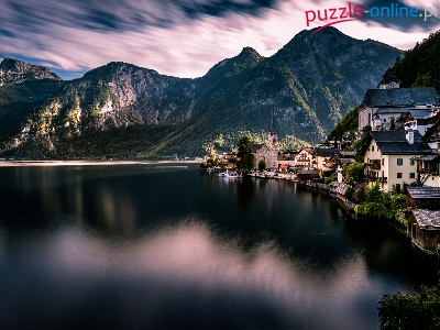 Góry, Hallstatt, Jezioro Hallstattersee, Austria, Domy, Alpy Salzburskie