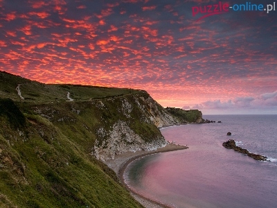 Men Of War Bay, Zachód słońca, Anglia, Wybrzeże Jurajskie, Morze