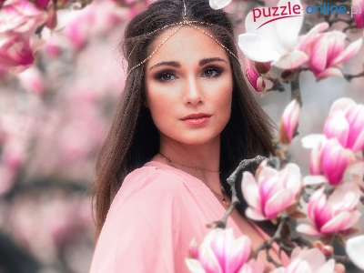 Różowa, Magnolie, Kobieta, Szatynka, Bluzka