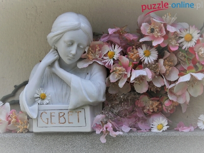 Modlitwa, Napis, Smutek, Figurka, Gebet, Kwiaty