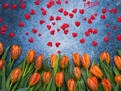 Puzzle Czerwone, Pomarańczowe, Tulipany, Serduszka