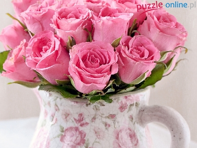 Puzzle Ceramiczny, Różowe, Róże, Dzbanek