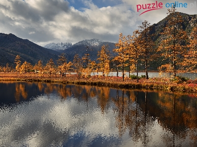 Jezioro Jack London, Góry Kołymskie, Rosja, Jesień, Drzewa, Kołyma