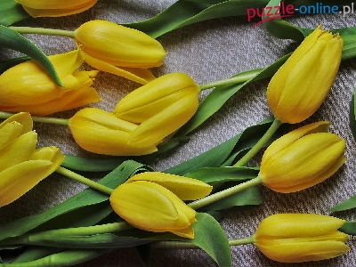 Puzzle Szara, Żółte, Tulipany, Tkanina