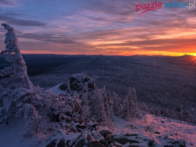 Rośliny, Las, Chmury, Zima, Drzewa, Zachód słońca