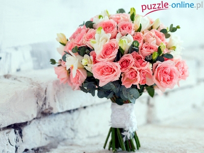 Róże, Bukiet, Frezje, Kwiaty, Różowe, Białe