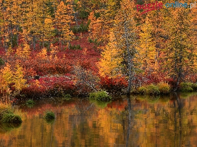 Drzewa, Kołyma, Rosja, Jezioro Jack London, Jesień, Odbicie, Magadan