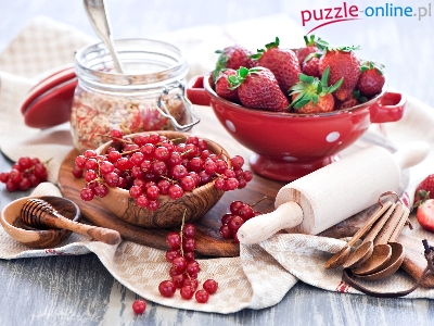 Łyżki, Miód, Porzeczki, Truskawki, Wałek