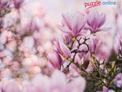 Puzzle Magnolia, Kwiaty, Bokeh