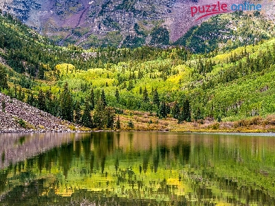 Zbocza, Aspen, Stany Zjednoczone, Drzewa, Jezioro Maroon Lake, Góry, Kolorado
