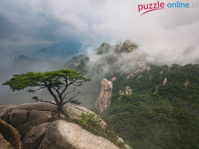 Zima, Skały, Drzewa, Góry, Korea Południowa, Park Narodowy Bukhansan, Prowincja Gyeonggi-do, Kamienie, Dobongsan, Ośnieżone, Sosna