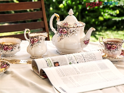 Zestaw kawowy, Gazeta, Cukiernica, Porcelana, Mlecznik, Zastawa, Dzbanek, Filiżanki
