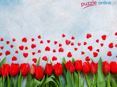 Serduszka, Tło, Czerwone, Tulipany, Biało-niebieskie