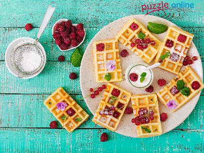 Porzeczka, Talerz, Gofry, Maliny, Cukier puder