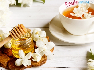 Filiżanka, Jaśmin, Kompozycja, Kwiaty, Herbata jaśminowa, Białe, Miód