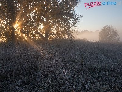 Puzzle Łąka, Drzewa, Przebijające światło, Rośliny
