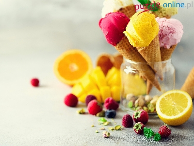 Słoik, Lody, Cytryna, Owocowe, Rożki, Maliny