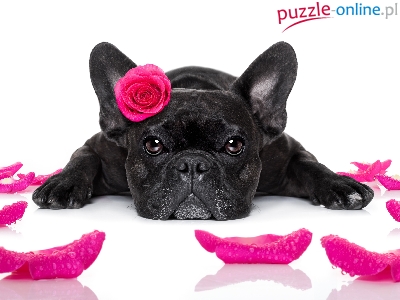 Puzzle Róża, Pies, Buldog francuski, Płatki