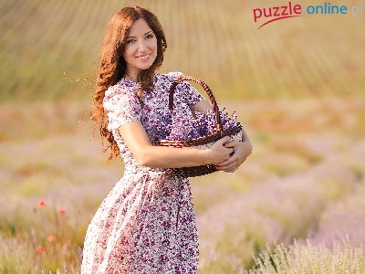 Koszyk, Brunetka, Lawenda, Dziewczyna, Łąka, Kosz