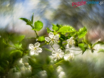 Puzzle Drzewo owocowe, Kwiaty, Bokeh