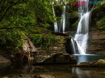 Skały, Roślinność, Wodospad, Omszałe, Drzewa