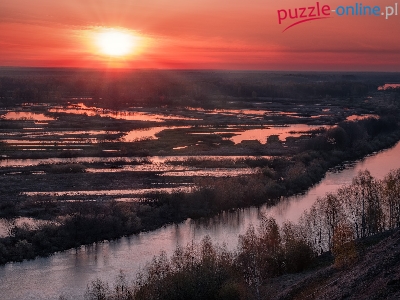 Drzewa, Rosja, Wschód słońca, Rzeka Klaźma, Obwód moskiewski