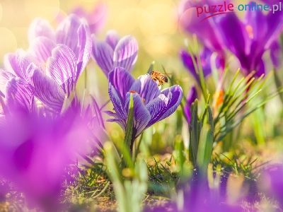 Puzzle Krokusy, Kwiaty, Pszczoła