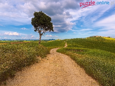 Toskania, Łąki, Drzewo, Pola, Włochy, Wzgórza, Droga