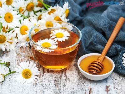 Przyroda, Rumianek, Filiżanka, Herbata, Miód, Kwiaty