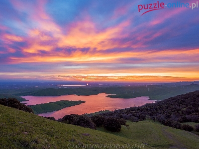 Dolina, Livermore, Stany Zjednoczone, Park regionalny Dell Valle, Wschód słońca, Jezioro, Kalifornia