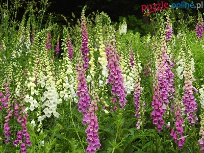 Naparstnice, Zbliżenie, Białe, Różowe, Kwiaty