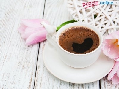Tulipany, Wiklinowe, Deski, Kawy, Różowe, Filiżanka, Serce