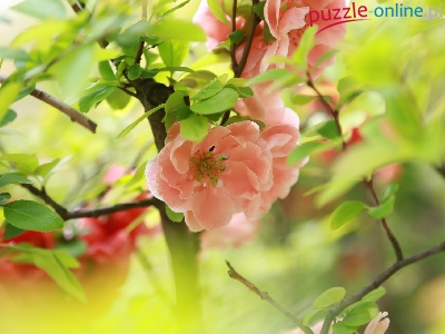 Puzzle Kwiaty, Gałązki, Różowe, Listki