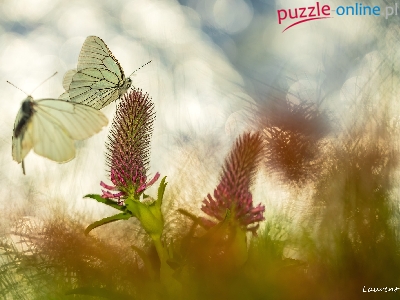 Kwiaty, Motyle, Niestrzęp głogowiec, Koniczyna krwistoczerwona