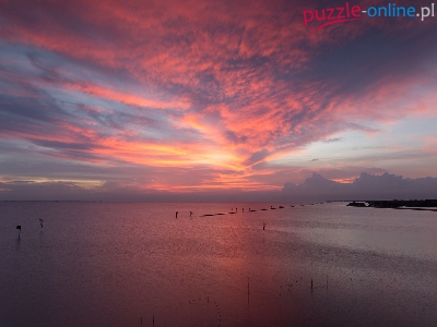 Kolorowe, Chmury, Zachód słońca, Morze, Niebo