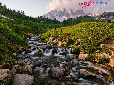 Rzeka, Szczyt Mount Rainier, Stany Zjednoczone, Góry, Park Narodowy Mount Rainier, Kamienie, Stan Waszyngton