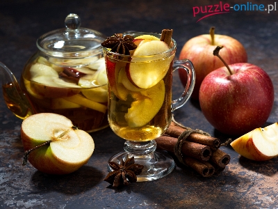 Szklanka, Jabłkowy, Cynamon, Napój, Dzbanek, Jabłka