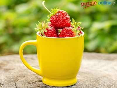 Puzzle Kubek, Żółty, Truskawki