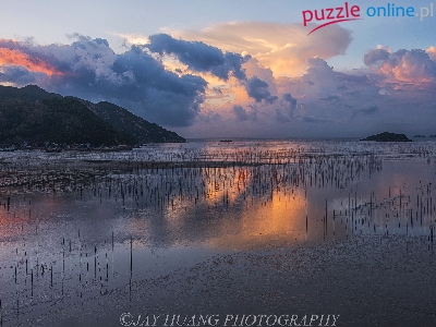 Morze Wschodniochińskie, Góry, Chiny, Wschód słońca, Chmury, Hrabstwo Xiapu