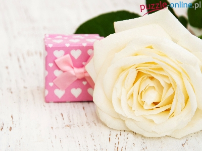 Puzzle Pudełko, Biała, Róża, Prezent
