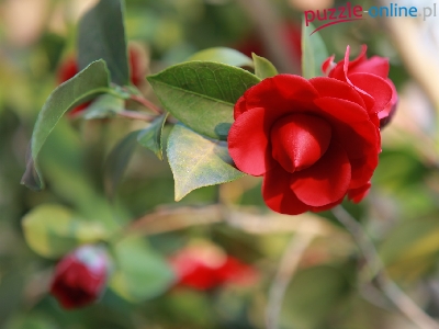 Puzzle Kamelia, Czerwony, Kwiat, Pąk