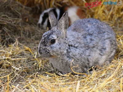 Puzzle Królik, Szary, Słoma