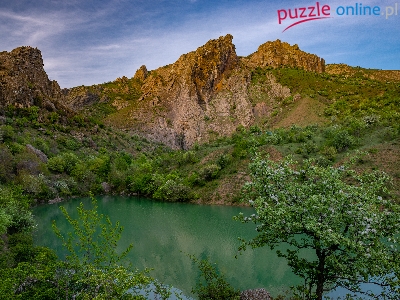 Puzzle Krzewy, Góry, Jezioro, Drzewa