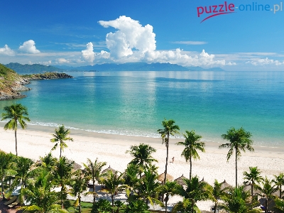 Chmury, Plaża An Bang Beach, Wietnam, Morze, Palmy, Hoi An