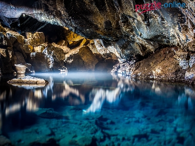 Skały, Islandia, Jaskinia Grjotagja, Odbicie, Woda
