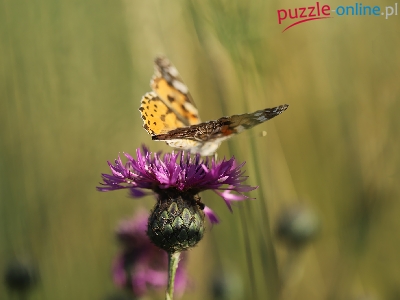 Puzzle Kwiat, Chaber driakiewnik, Fioletowy, Motyl
