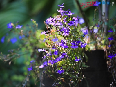 Puzzle Rozmyte tło, Lobelia, Kwiaty, Światło
