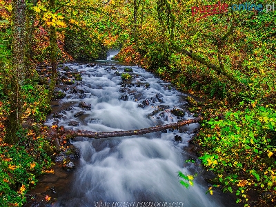 Las, Stany Zjednoczone, Rezerwat przyrody Columbia River Gorge, Drzewa, Jesień, Rzeka Bridal Veil Creek, Kamienie, Oregon