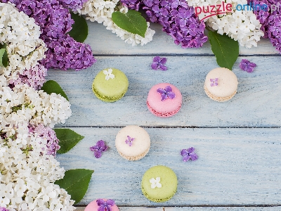 Makaroniki, Deski, Bez, Fioletowy, Lilak, Ciasteczka, Biały, Liście